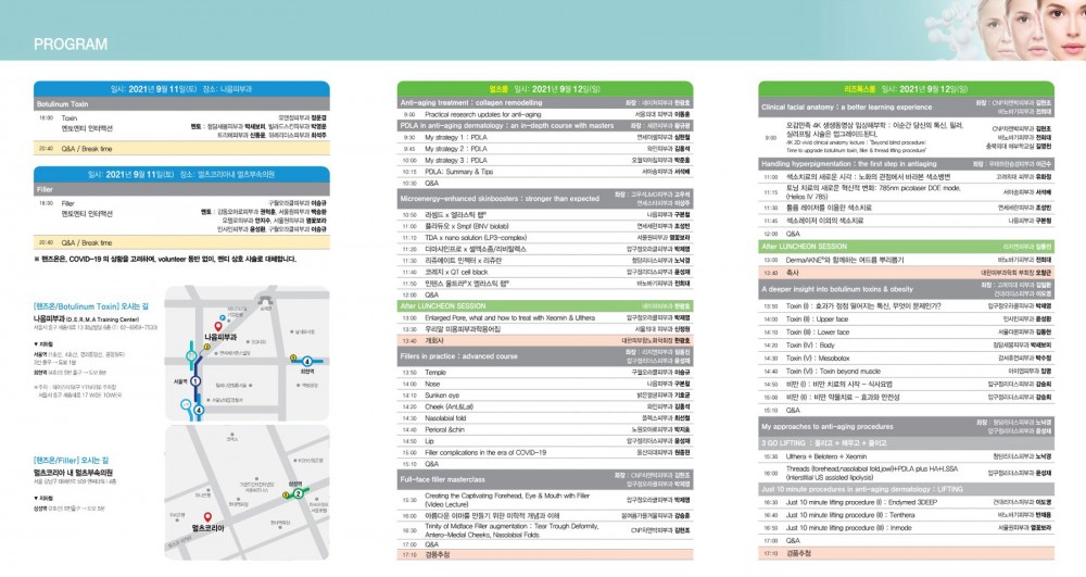 2021년 9월 12일 | 대한피부항노화학회 제11회 SUMMER WORKSHOP 대한항노화학회 2021년 0 4836 2021.06.18 09:26 2021년 9월 12일 | 대한피부항노화학회 제11회 SUMMER WORKSHOP 장소 : 양재동 aT 센터, 제 1 전시장 일시 : 2021년 9월 12일 (토) 오후 18 : 00 ~ 오후 21 : 00 주최 : 대한피부항노화연구회(KAAD) / 대한피부과의사회 보톡스 필러 카페
